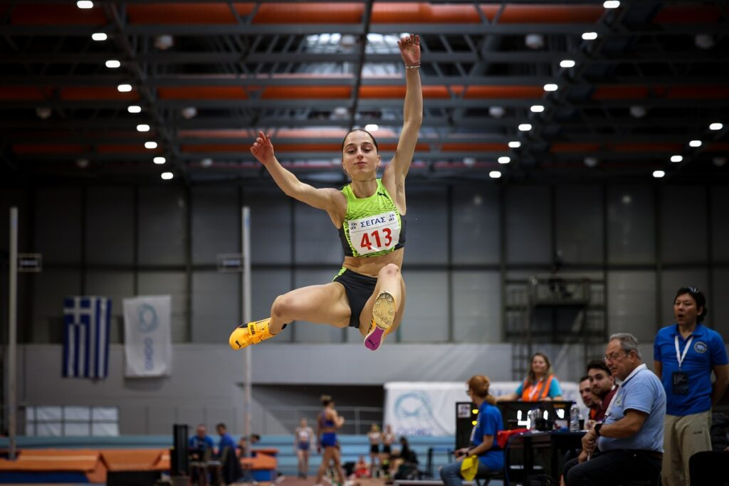 Η 18χρονη Έβελυν Μητροπούλου (ΓΣ Κηφισιάς) με νέο πανελλήνιο ρεκόρ Κ20, 6.45μ., με το τελευταίο της άλμα, πήρε την 1η θέση και το χρυσό μετάλλιο στο μήκος. Η Ναταλία Μπέση (ΓΣ Πρωτέας Ηγουμενίτσας) πήδησε 6.42, έκανε και αυτή ατομικό ρεκόρ σε κλειστό στίβο και πήρε την δεύτερη θέση.