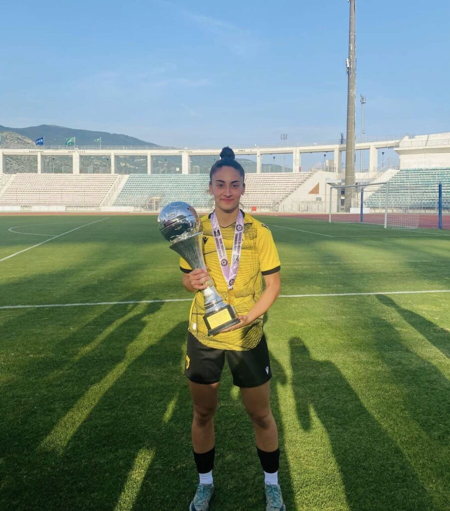 H γυναικεία ομάδα της AEK επικράτησε το Σάββατο 2-0 του Παναθηναϊκού στο Πανθεσσαλικό Στάδιο, κατακτώντας το Κύπελλο Ελλάδας και παράλληλα πετυχαίνοντας το νταμπλ. Η 18χρονη Πυργιώτισσα αμυντικός της ΑΕΚ, Σοφία Ζάγκλη, που ήταν βασική και σε αυτό το ματς, πανηγύρισε το νταμπλ, σε μια ονειρική σεζόν γι’ αυτή, στην πρώτη της χρονιά στην ΑΕΚ. Το 1-0 πέτυχε στο 31′ η Βιολάρη με κεφαλιά και το 2-0 στο 5ο λεπτό των καθυστερήσεων η Βενιαμίν. To Πρωτάθλημα και το Κύπελλο ήταν οι πρώτοι τίτλοι από την ίδρυση της ομάδας ποδοσφαίρου γυναικών της ΑΕΚ.