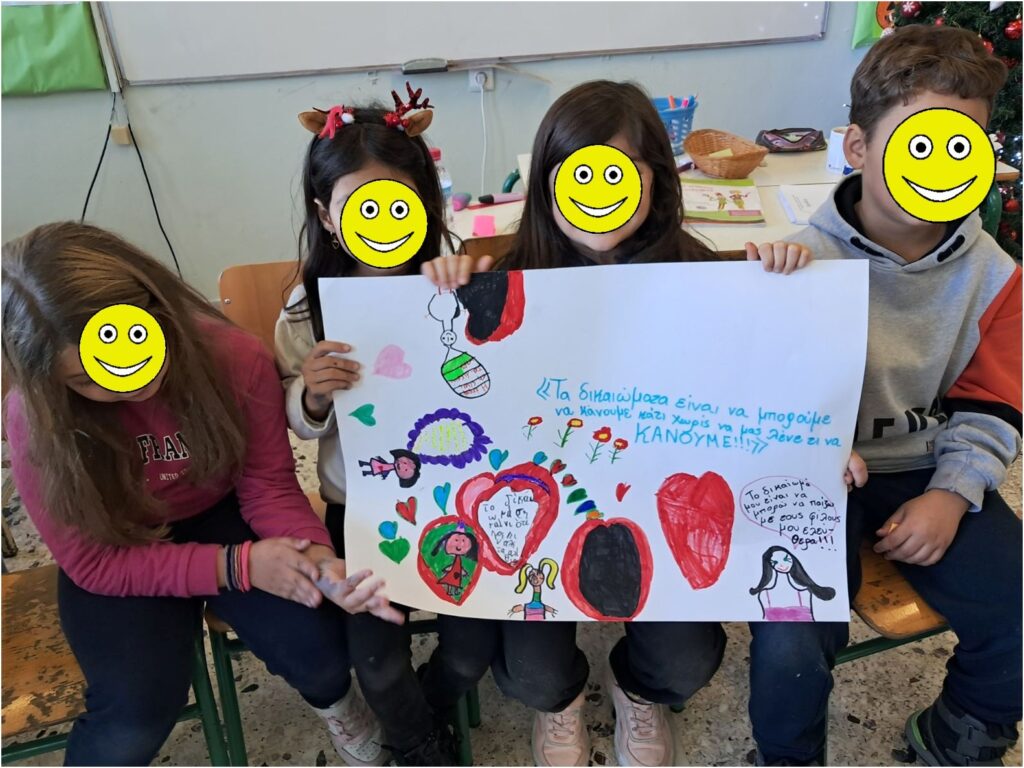 Με βιωματικές δραστηριότητες και συζήτηση, τα παιδιά διερεύνησαν πώς τα δικαιώματά τους συνδέονται με την καθημερινότητά τους και πώς μπορούν να αναγνωρίζουν περιπτώσεις όπου αυτά δεν τηρούνται. Συζητήθηκαν μορφές αποκλεισμού, περιθωριοποίησης και άνισης μεταχείρισης, καθώς και τα συναισθήματα που προκαλούν, όπως λύπη, φόβος ή θυμός.
