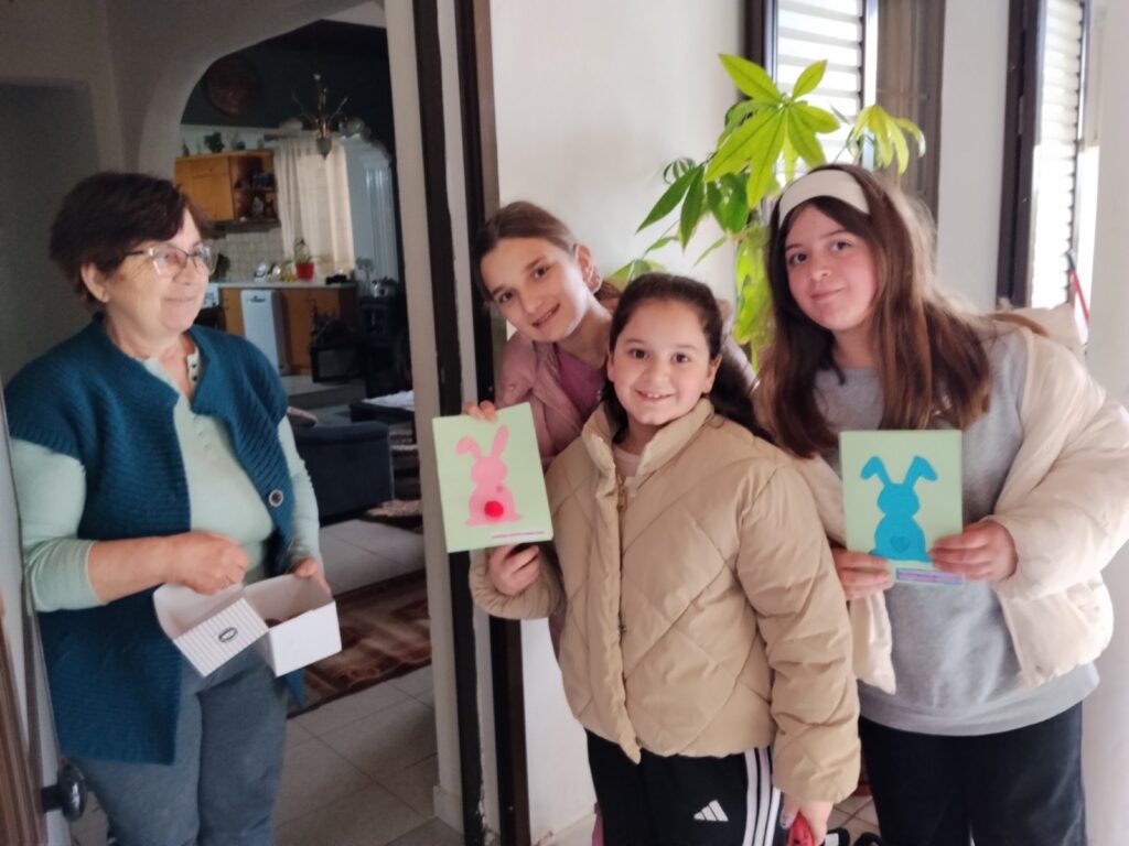Παράλληλα, οι υπόλοιποι μαθητές του σχολείου μοίρασαν πασχαλινές κάρτες με ευχές στους κατοίκους του χωριού, μεταφέροντας μηνύματα αγάπης και αισιοδοξίας.
