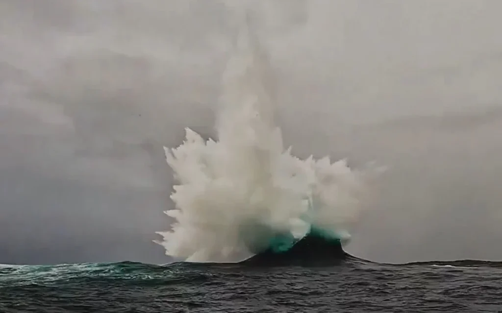 Σύμφωνα με πληροφορίες του ABC Australia, η «σύγκρουση» αυτή των κυμάτων προκάλεσε μια κάθετη «έκρηξη» νερού ύψους 40 μέτρων, ενώ η δύναμη του φαινομένου ήταν τόσο μεγάλη, που το νερό χτύπησε ακόμη και το drone που κατέγραφε τη στιγμή.