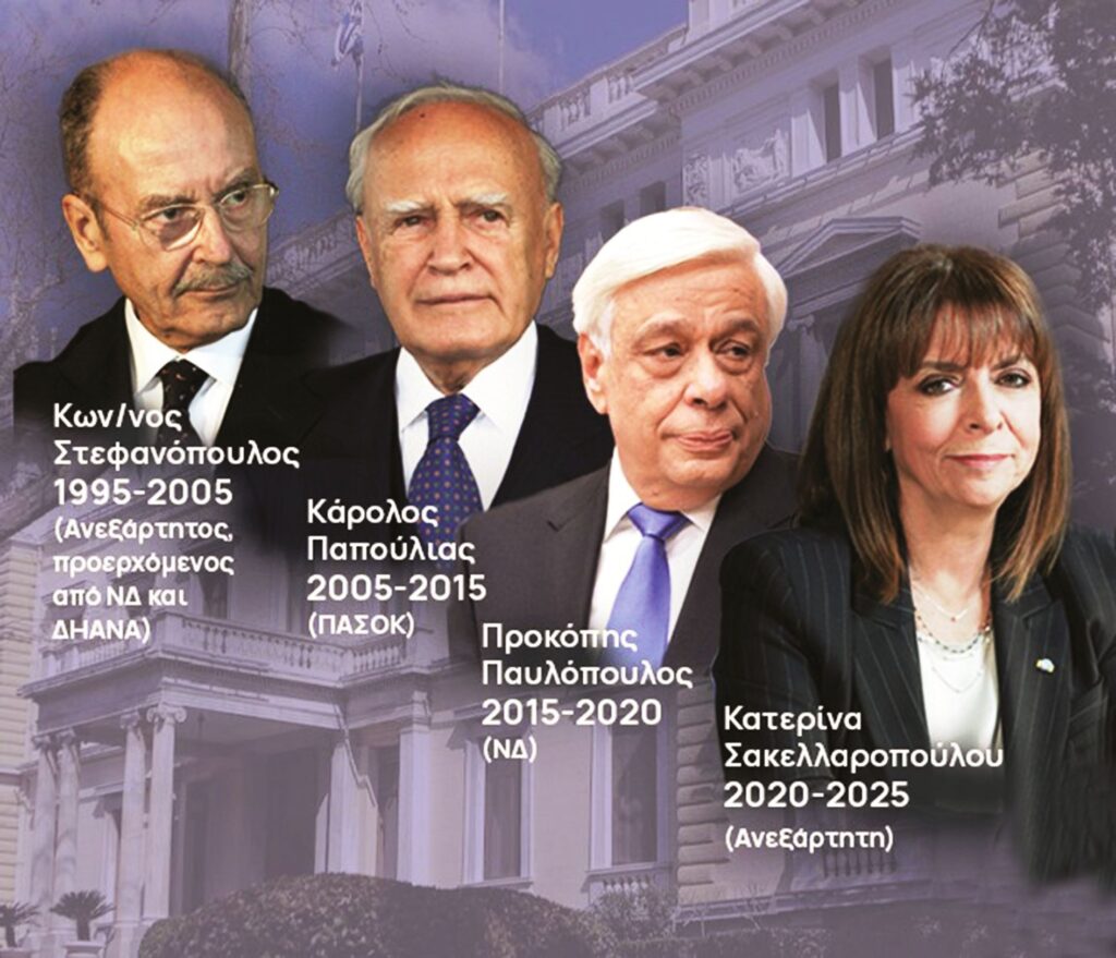 Οι τέσσερις ως τώρα Πρόεδροι της Δημοκρατίας από το 1995 έως σήμερα ήταν οι Κωνσταντίνος Στεφανόπουλος, Κάρολος Παπούλιας, Προκόπης Παυλόπουλος και Κατερίνα Σακελλαροπούλου. Οι δύο πρώτοι  Πρόεδροι της Δημοκρατίας είχαν δύο θητείες στο ενεργητικό τους και από μια ο Προκόπης Παυλόπουλος και η Κατερίνα Σακελλαροπούλου. Ακολουθεί μια σύντομη ιστορική διαδρομή των τεσσάρων τελευταίων Προέδρων της Δημοκρατίας.
