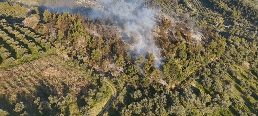 Η πρώτη μεγάλη πυρκαγιά της φετινής χρονιάς σημειώθηκε το μεσημέρι του Σαββάτου στη ζώνη Ελαιώνα-Αμπελώνα-Χειμαδιού του δήμου Πύργου, αφήνοντας πίσω της περίπου 40 με 50 στρέμματα αναγεννημένης δασικής έκτασης.