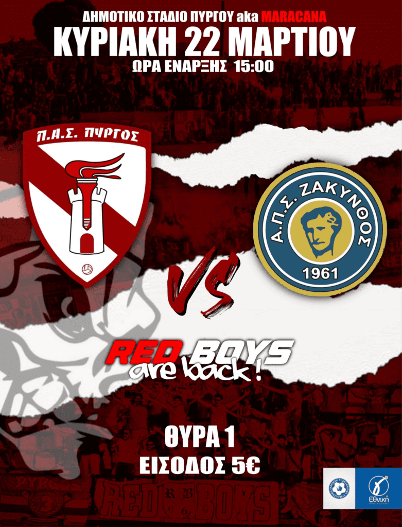 Ο ΠΑΣ Πύργος ξεκινά την ερχόμενη Κυριακή 22/3 τα πλέι-οφ για την ανάδειξη του πρωταθλητή στον 4ο όμιλο της Γ΄ Εθνικής, με αντίπαλο την Ζάκυνθο, στις 3μ.μ. στο Δημοτικό Στάδιο Πύργου. Οι οργανωμένοι οπαδοί του Πανηλειακού, Red Boys, μέσω ανακοίνωσής τους απευθύνουν κάλεσμα στους φιλάθλους να προσέλθουν μαζικά στο γήπεδο και να μετατρέψουν το «Μαρακανά» σε… καμίνι. Το γεγονός πως θα υπάρχουν και οπαδοί του ΑΠΣ Ζάκυνθος στο Στάδιο Πύργου έχει κινητοποιήσει ήδη τους ερυθρόλευκους οπαδούς και την Κυριακή η ατμόσφαιρα από τους φίλους του Πανηλειακού αναμένεται να είναι… καυτή.