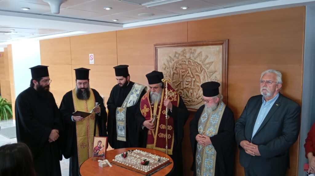 Ο Σεβασμιώτατος έκοψε το πρώτο κομμάτι της πίτας για τον Δήμαρχο, ως οικοδεσπότη της εκδήλωσης και πρώτου πολίτη του Δήμου Ήλιδας.