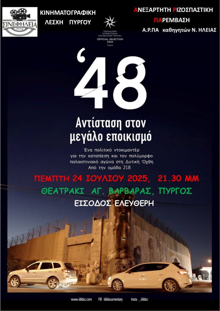 Το ντοκιμαντέρ με τίτλο «48 | Αντίσταση στον μεγάλο εποικισμό» γυρίστηκε το καλοκαίρι του 2022 στην κατεχόμενη Δυτική Όχθη.