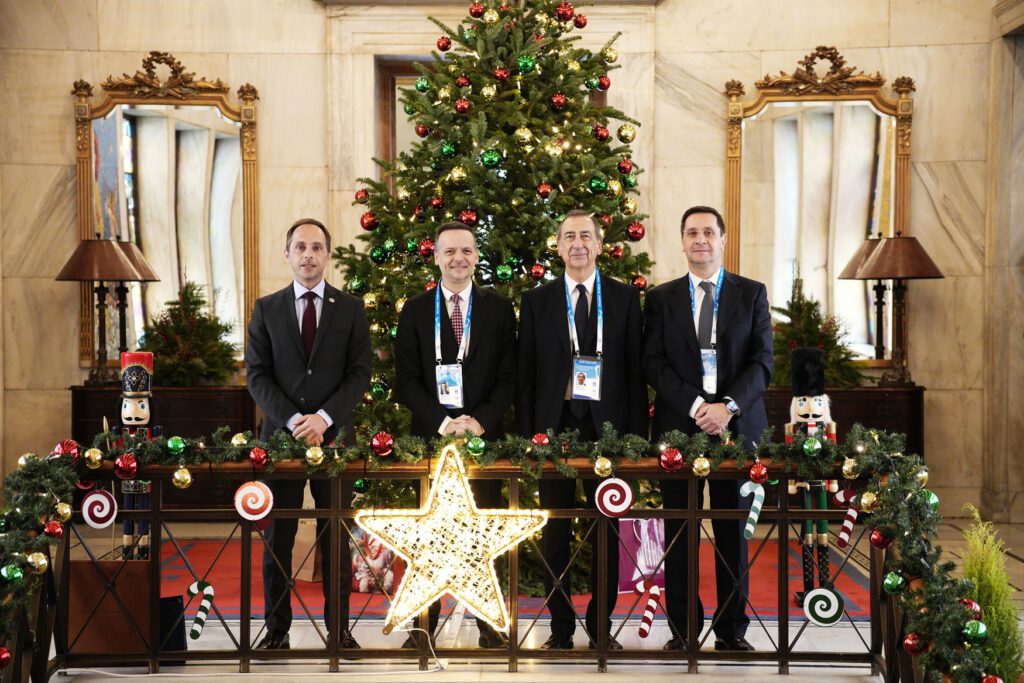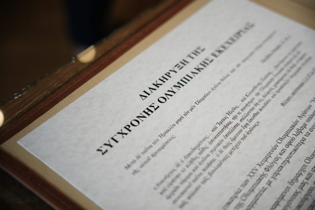 Η υπογραφή της Διακήρυξης της Ολυμπιακής Εκεχειρίας – ενός θεσμού που έχει τις ρίζες του στην Αρχαία Ολυμπία – αποτέλεσε κορυφαία στιγμή της ημέρας. Ο Δήμαρχος Αρχαίας Ολυμπίας, Αριστείδης Παναγιωτόπουλος, ως θεσμικός φορέας του τόπου στον οποίο γεννήθηκε το ιδεώδες της Εκεχειρίας, ήταν εκεί. Όπως είναι γνωστό, ο Δήμος Αρχαίας Ολυμπίας σε συνεργασία με το Διεθνές Κέντρο Ολυμπιακής Εκεχειρίας, στην προσπάθειά τους να ενδυναμώσουν ακόμα περισσότερο το φιλειρηνικό μήνυμα των Ολυμπιακών Αγώνων, καθιέρωσαν από το 2016, με την ευκαιρία των Ολυμπιακών Αγώνων του Ρίο Ντε Τζανέιρο, την υπογραφή της Διακήρυξης της Ολυμπιακής Εκεχειρίας για την παύση των πολέμων κατά την διάρκεια των Ολυμπιακών Αγώνων. Η Αθήνα, ως σύγχρονο σημείο αναφοράς της Δημοκρατίας και του Ολυμπισμού, ανέλαβε σήμερα τον ρόλο του συνδετικού κρίκου ανάμεσα στις δύο ιταλικές πόλεις Μιλάνο και Κορτίνα που θα φιλοξενήσουν τους επερχόμενους Χειμερινούς Ολυμπιακούς Αγώνες «Μιλάνο-Κορτίνα 2026».
