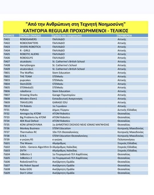Με τεράστια υπερηφάνεια ο Δήμος Πύργου ανακοινώνει την κατάκτηση της 1ης θέσης στο Πανελλήνιο Πρωτάθλημα Ρομποτικής από την ομάδα μας, Py-Robo! Οι μαθητές μας (κατηγορία Δ’–ΣΤ’ Δημοτικού) όχι μόνο ανέβηκαν στο ψηλότερο σκαλί του βάθρου, αλλά εξασφάλισαν και την πρόκριση για το Προολυμπιακό Πρωτάθλημα.