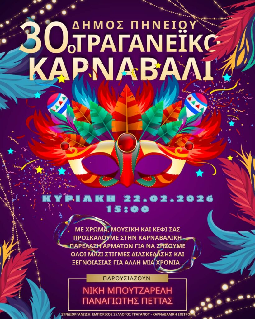 Με ρυθμό, χρώμα και αστείρευτο κέφι κορυφώνονται οι φετινές αποκριάτικες εκδηλώσεις στον Δήμο Πηνειού, που και φέτος φιλοδοξεί να αποτελέσει το μεγάλο σημείο αναφοράς των καρναβαλιστών της Ηλείας. Η Κυριακή της Αποκριάς και η Καθαρά Δευτέρα μετατρέπουν την περιοχή σε ένα απέραντο σκηνικό γιορτής, συγκεντρώνοντας πλήθος επισκεπτών και συμμετεχόντων από κάθε γωνιά.