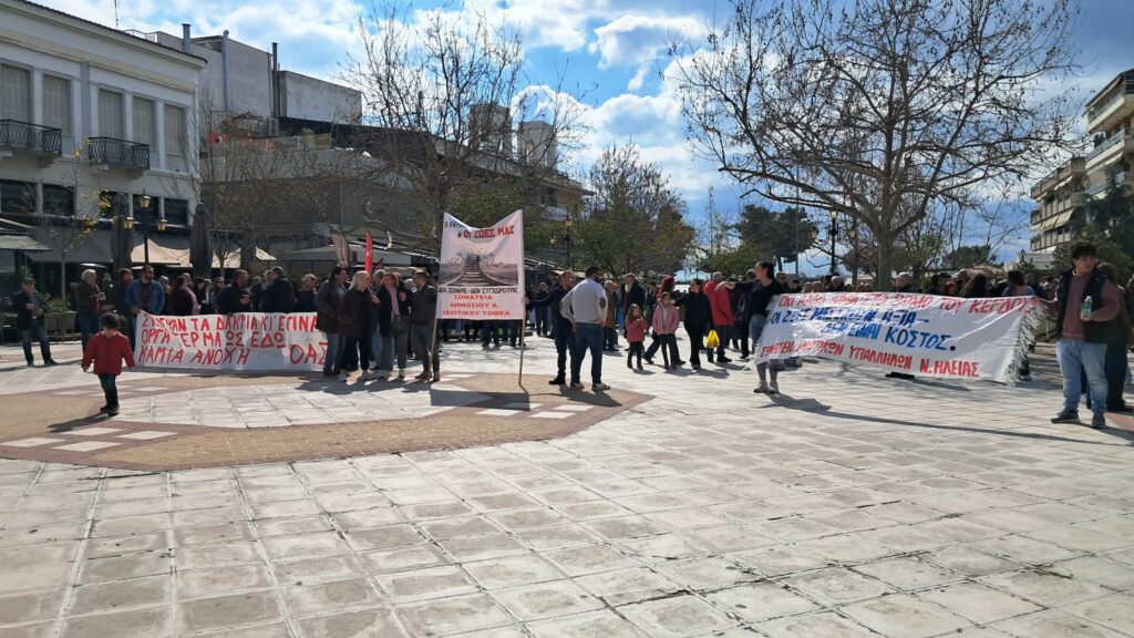 Συγκέντρωση και πορεία διαμαρτυρίας έκαναν με αφορμή τη συμπλήρωση τριών ετών από το σιδηροδρομικό δυστύχημα των Τεμπών πολίτες και φορείς του Πύργου το πρωί του Σαββάτου στην κεντρική πλατεία.