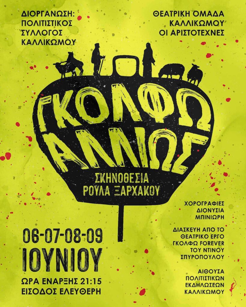 Νέα παράσταση από την θεατρική ομάδα Καλλικώμου «Οι Αριστοτέχνες» σε διασκευή και σκηνοθεσία της Ρούλας Ξαρχάκου από το έργο του Ντίνου Σπυρόπουλου «Γκόλφω for ever”