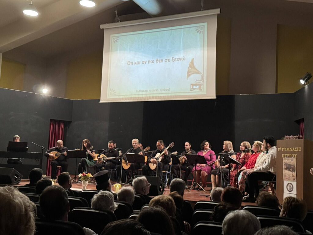 Υπέροχο μουσικό οδοιπορικό στο ρεμπέτικο τραγούδι με την Πολυφωνική Πατρών στο 1ο Γυμνάσιο Πύργου από τον Πολιτιστικό Σύλλογο Τραπεζών