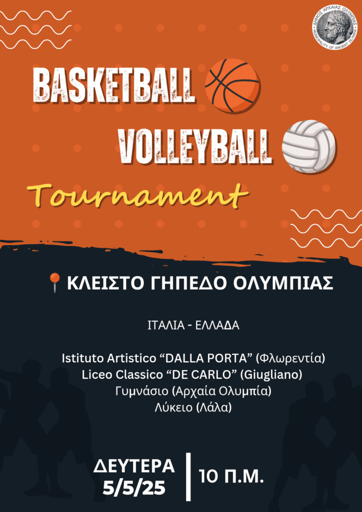 Στο πλαίσιο της επίσκεψής τους, θα συμμετάσχουν σε τουρνουά βόλεϊ και μπάσκετ στο Κλειστό Γήπεδο της Αρχαίας Ολυμπίας, το πρωί της Δευτέρας 5 Μαΐου (έναρξη 10 π.μ.), σε συνεργασία με την Διευθύντρια του Γυμνασίου Αρχαίας Ολυμπίας, κυρία Αλεξία Λιάγκουρα και τη συμμετοχή και των μαθητών της Ολυμπίας και του Λυκείου Λάλα.