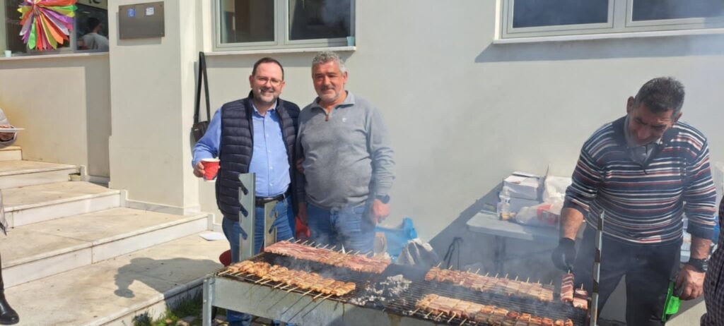 Τρικούβερτο γλέντι στήσανε χθες στο Διοικητήριο, στην ΠΕ Ηλείας, με πρωτοβουλία του αντιπεριφερειάρχη Νίκου Κοροβέση, όπου γιορτάσανε δεόντως την Τσικνοπέμπτη, με άφθονη ψητούρα και μπόλικο χορό ως το απόγευμα. Τα κάρβουνα στη φωτιά μπήκανε νωρίς- νωρίς,  τα μεγάφωνα για την μουσική είχαν εγκατασταθεί από το πρωί και στις 11 σταμάτησε η εργασία για τους υπαλλήλους και κατέβηκαν όλοι κάτω στην είσοδο όπου ξεκίνησε και το… τσίκνα πάρτι! Στις ψησταριές μπήκαν εκατοντάδες σουβλάκια και λουκάνικα και το φαγοπότι άρχισε, όχι μόνο για τους υπαλλήλους και το πολιτικό προσωπικό αλλά και για τους πολίτες και επισκέπτες αφού η πρόσκληση ήταν ανοιχτή για όλους.