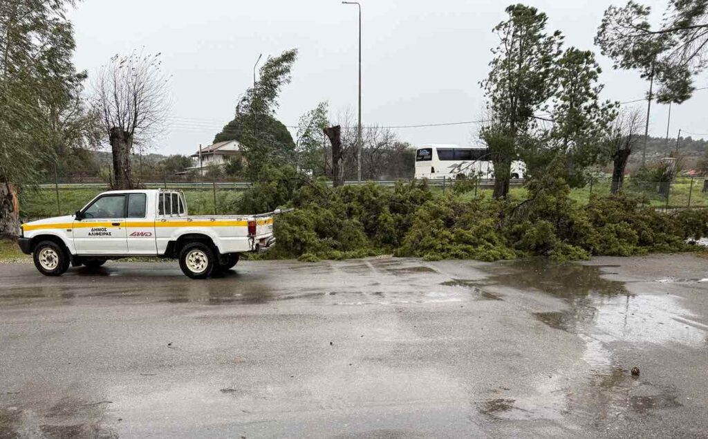 Επί τόπου στις ζημιές βρέθηκαν με εντολή του Δημάρχου κ. Σάκη Μπαλιούκου συνεργεία τεχνικών του Δήμου, με σκοπό την αντιμετώπιση των προβλημάτων που προέκυψαν από τους ισχυρούς ανέμους αλλά και τις καταιγίδες που ενέσκηψαν από το απόγευμα της Τετάρτης 21 Ιανουαρίου.